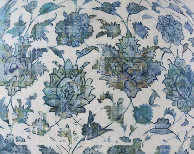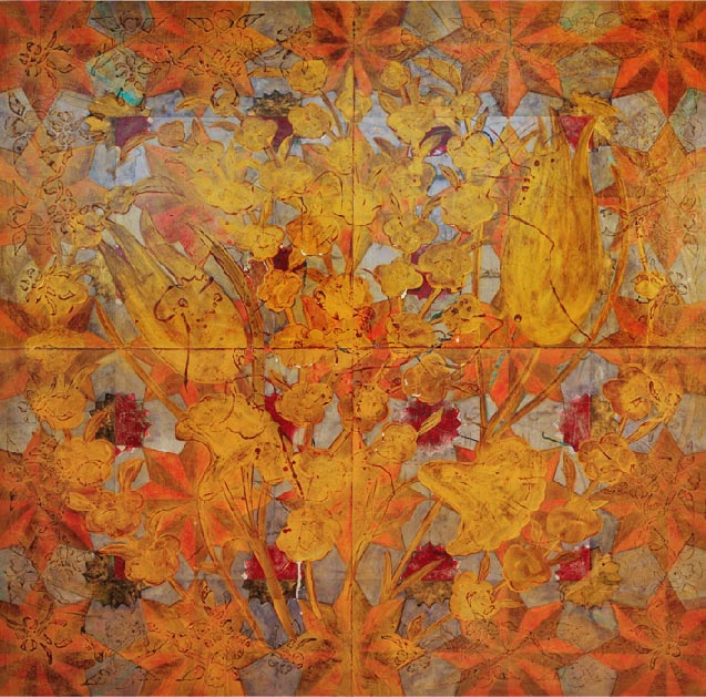 After a number of years of working with geometric patterns I ran across this quote: Note to Self: Step Out of Line. It was about seeing the world differently, thinking about things from a new perspective. This inspired me to figuratively step out of line, away from the purely geometric form and structure used in the Islamic Series and work with more organic, curvilinear lines and shapes. Based on botanicals, these pieces come in to being from a base of those same geometric forms.