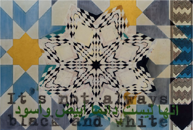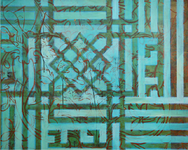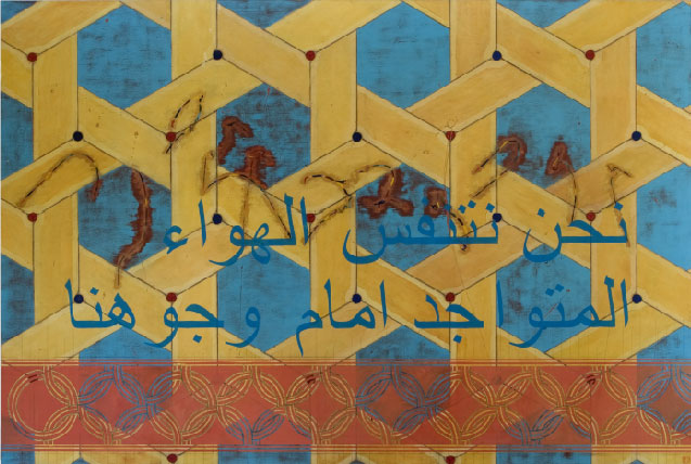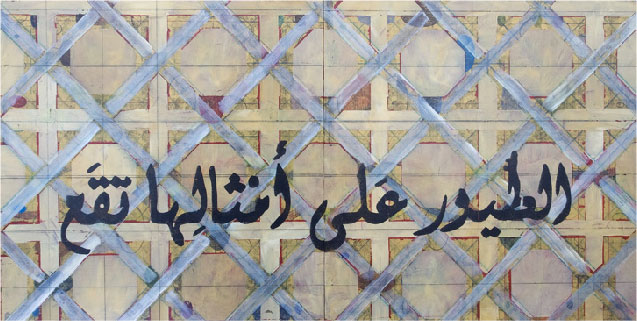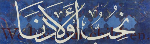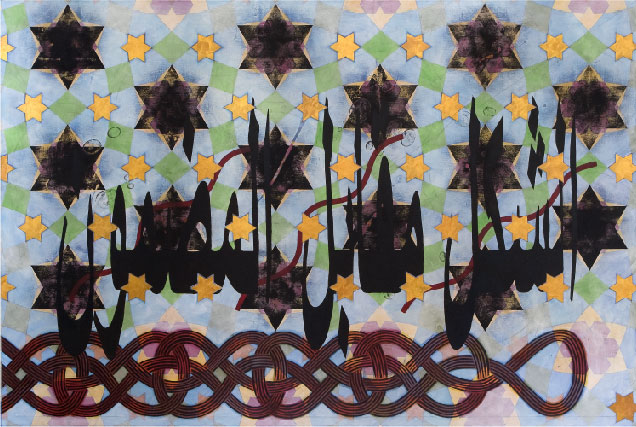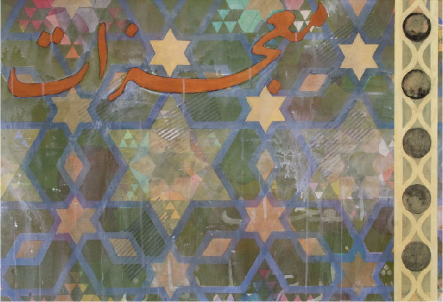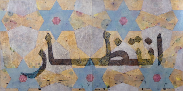 Nota Bene: Although not always apparent, all of the works in the Islamic series include Arabic script. The English translation of this embedded script is the basis for the title of each work except in cases where I’ve directly used the translation of a Walt Whitman poem into Iraqi, in which cases I’ve used the original English title of the poem. A native Arabic speaker reviews my work for any possible errors of translation.
