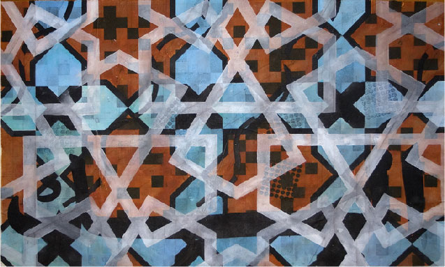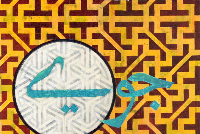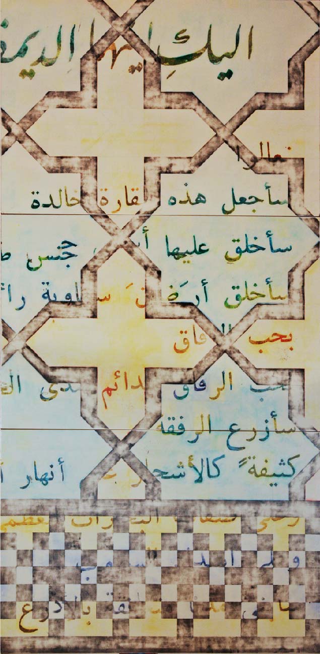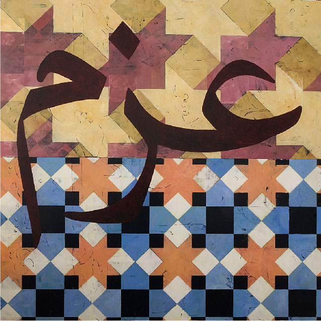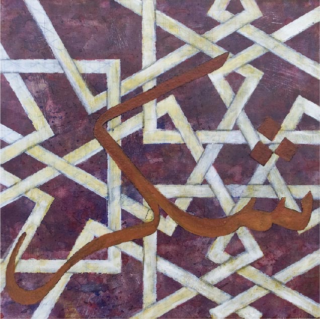 After completing this initial series I continued in the same vein, now calling the series the Islamic Works. The work has evolved to include ideograms, Arab proverbs and phrases as well as Whitman’s verses, plus an expansion outside of the purely geometric motif. Through combining beauty and meaning, I hope to introduce a view of a culture as not simply political headlines, but as the expressive voices of individuals with their own hopes, dreams and desires.